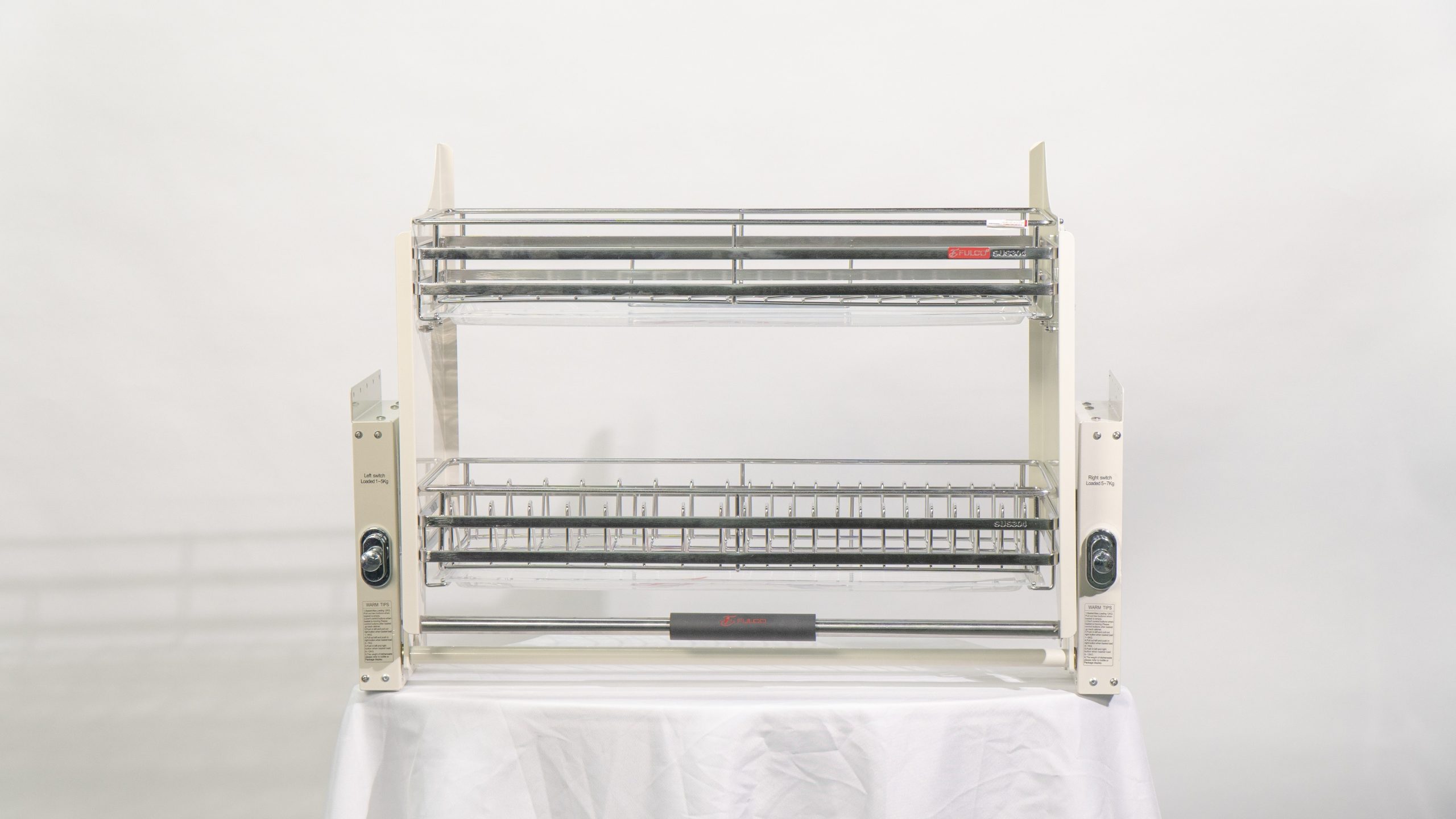 Thiết kế 2 tầng thông thoáng, rộng rãi giúp bạn thoải mái úp nhiều bát đĩa. Tầng trên là ngăn để bát được chế tạo bởi chất liệu Inox cao cấp, đảm bảo tốt sự ổn định khi nâng hạ. Ngay tầng dưới là ngăn để đĩa, không chỉ đẹp mắt mà còn giúp thuận tiện trong việc úp nghiêng, giúp cho bộ đĩa nhà bạn luôn khô ráo.